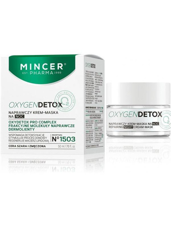 - Oxygen Detox to naprawczy krem-maska na noc od marki Mincer. Dla skóry szarej i zmęczonej. Stymuluje nocną odbudowę naskórka.