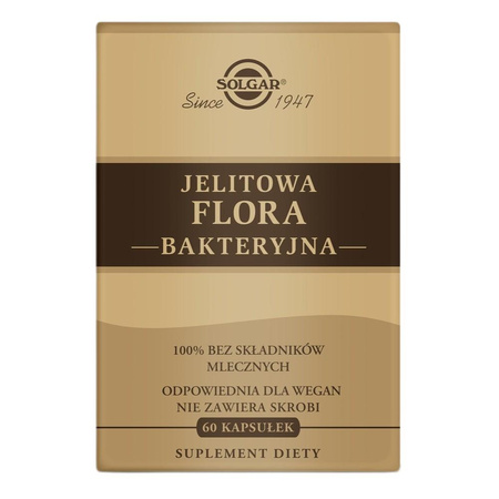 - Solgar Jelitowa Flora Bakteryjna został opracowany z myślą o uzupełnianiu naturalnej flory bakteryjnej jelit. Formuła zawiera dwa naukowo przebadane szczepy bakterii: L. acidophilus LA-5® oraz B. lactis BB-12®, dobrane ze względu na ich wysoką stabilność.