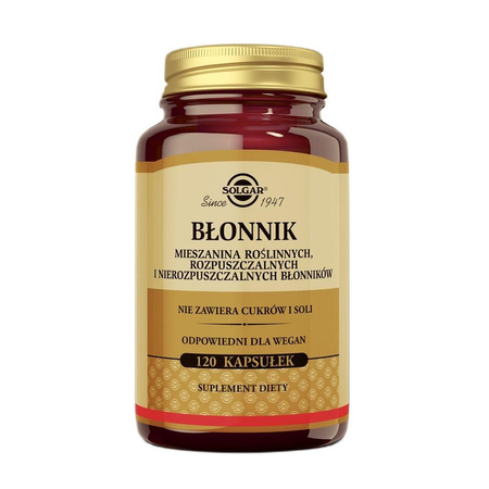 - Solgar Błonnik to suplement diety zawierający starannie dobraną mieszankę roślinnych błonników rozpuszczalnych i nierozpuszczalnych, wspierających prawidłowe funkcjonowanie układu pokarmowego. Formuła została opracowana z myślą o uzupełnianiu codziennej d